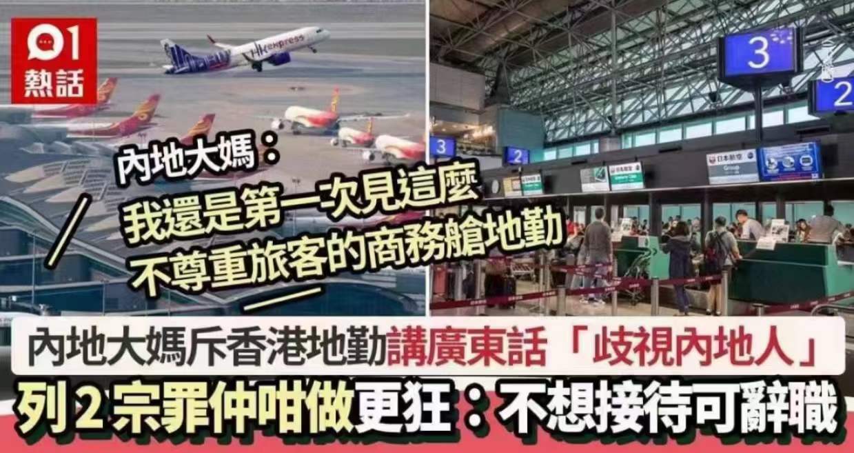 內地大媽怒斥香港機場地勤人員講廣東話是“歧視內地人”?收皮啦阿嬸