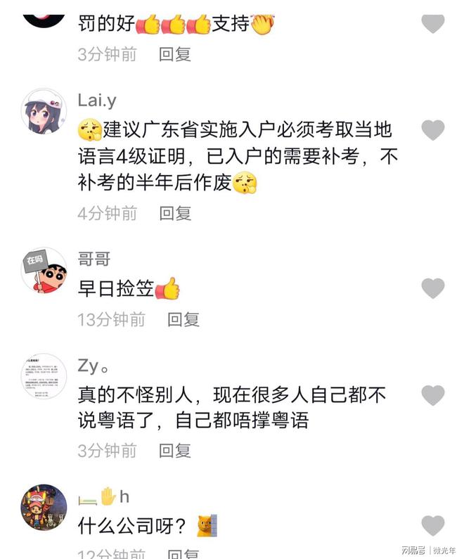 现在就是分成两派,一派说支持公司的规定,罚的好。另外一派就说,难怪现在那么少人讲粤语,原来是有这样的人存在。