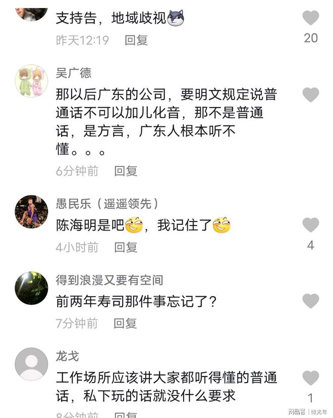 听到这个陈海明给出的理由,觉得这个陈海明非常的不会说话。什么叫做说粤语是非常不好的习惯?人家本来就是讲粤语的,又不是跟客户讲粤语,要是客户听不懂粤语的话,就跟他讲普通话。员工之间沟通讲粤语有什么关系呢,这就是在支持家乡话,这有什么不好的吗?
