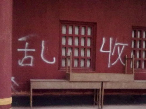 6月25日早,该校校史馆外墙上被喷上了“反对乱收费”、“渣滓学校”两行白色大字。