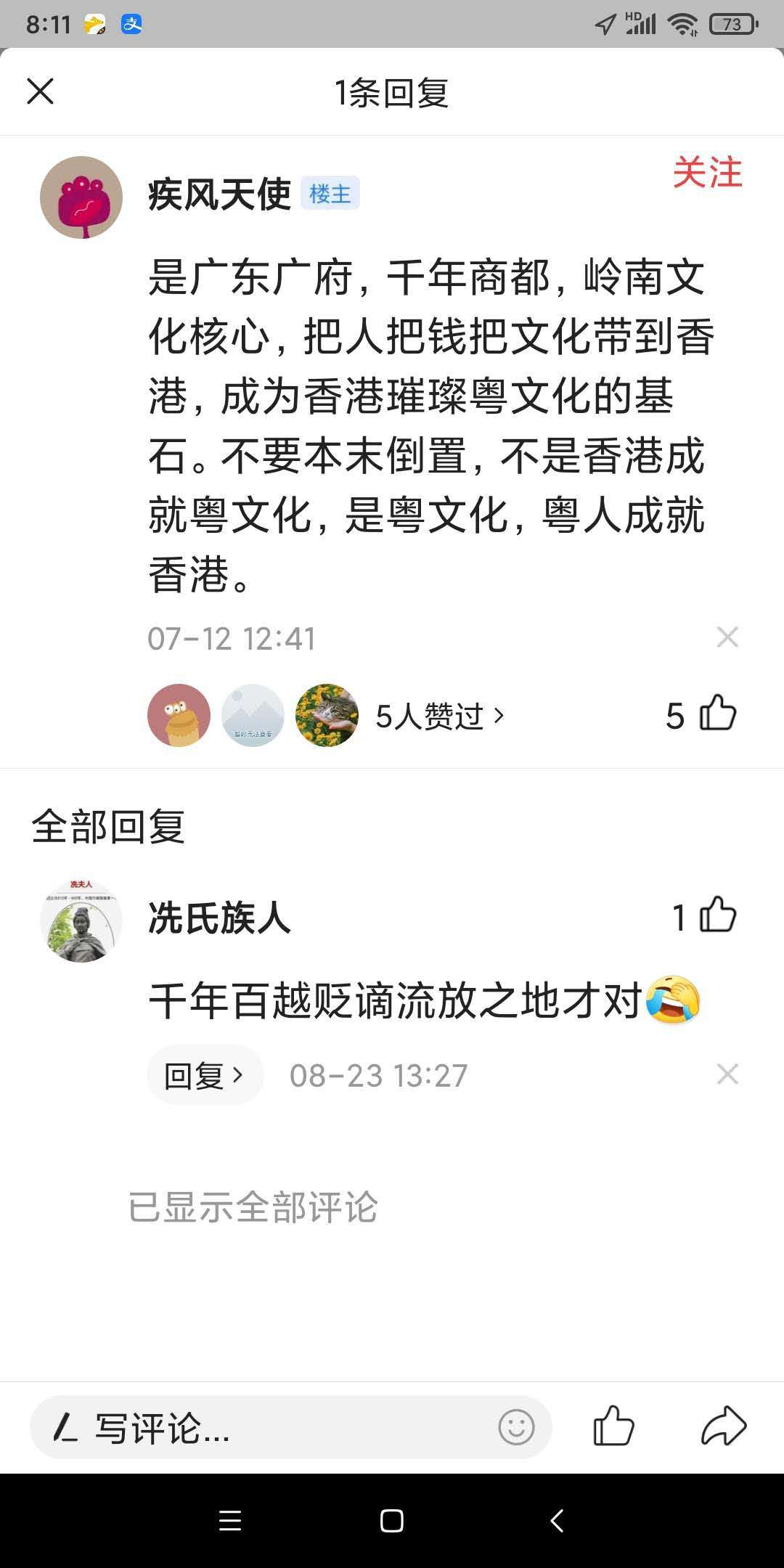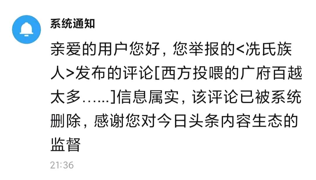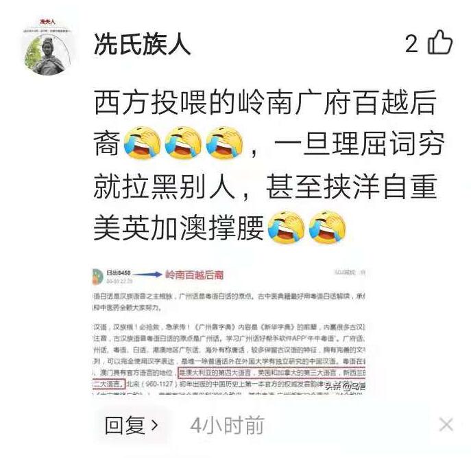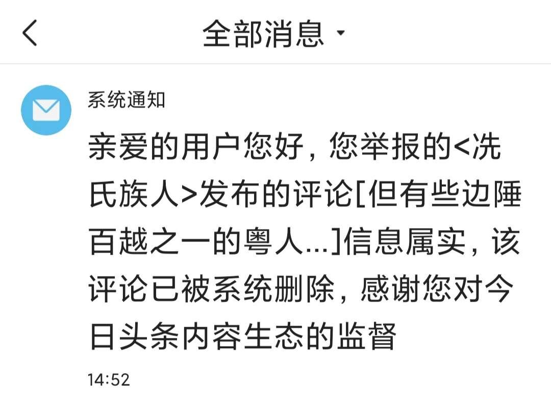 今日头条网民“冼氏族人”涉嫌违法诽谤攻击广东人及粤语的言论档案专页