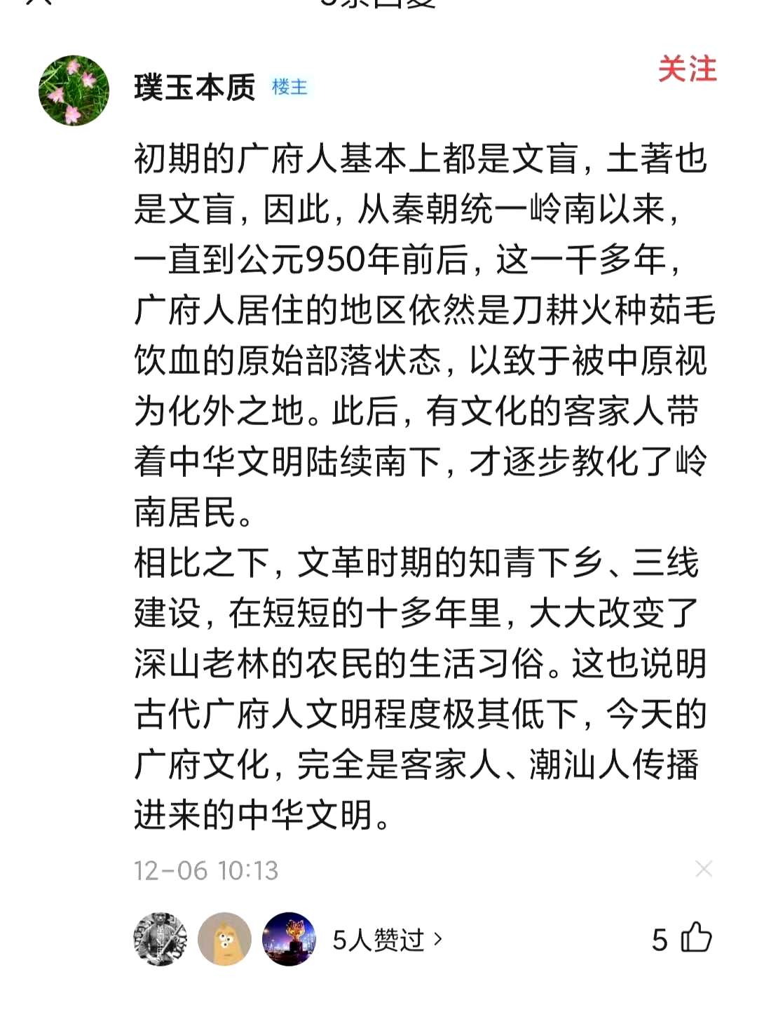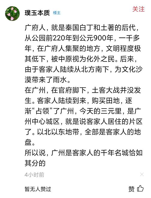 网民“璞玉本质”涉嫌违法诽谤攻击广东人及粤语的言论档案专页