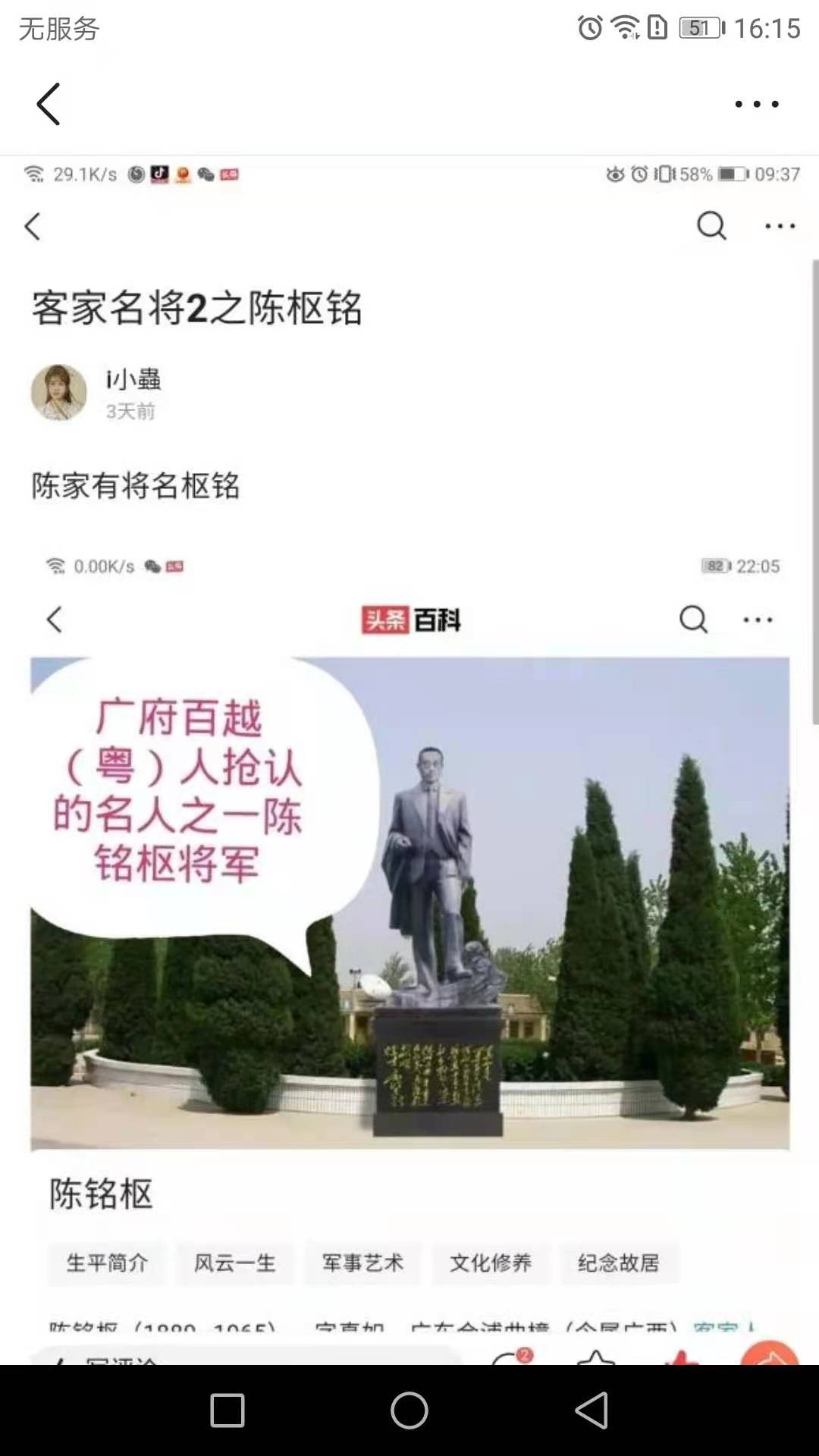今日头条网民“粤郎自大篮粤网”发布谬论“陈铭枢是客家人”被平台禁言7天,该网民是专业诽谤广东人和粤语的头条号,建议有关部门进行调查